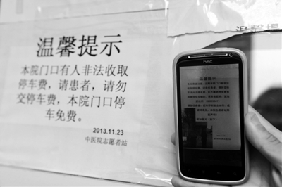 项博觉得怒不可遏,决定“采取一些措施”。11月25日,他打印了两张温馨告示单贴在“幸福志愿站”,告知患者“近期本院门口有非法收取停车费,请各位患者请勿交给不法分子停车费……”