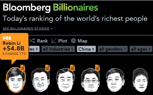 而就在短短14天前,李彦宏超越宗庆后成为内地第二首富。百度股价过去半年上涨了69%,李彦宏的资产净值迄今增加48亿美元,达到122.3亿美元。王健林的财富增长29亿美元,达到约121.6亿美元。