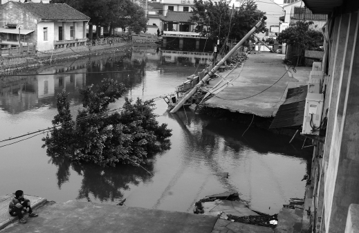 “部分地基被悬空的民房是在1980年建造的。”陈先生就是其中2间民房的户主。他说,当时他母亲在厨房烧饭,发生坍塌后母亲就从房间里逃了出来,还好有惊无险。坍塌的道路原来只是条2米宽的石板路,后来填埋河道加宽到8米。对坍塌的原因,包括陈先生在内多名住户都认为是河道清淤。