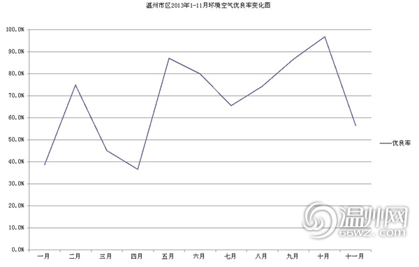 温州市区2013年1-11月环境空气优良率变化