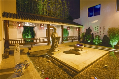 原水心饭店结合水心先生叶适的文化走精品路线,图为饭店内的叶适文化园。
