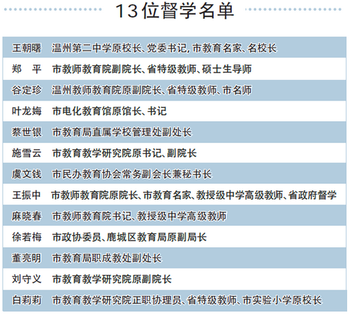 学校乱收费,老师有偿家教,怎么办?现在可以找到专人来反映情况了。昨日,温州市教育局举行直属义务教育学校责任督学挂牌启动仪式,13位“教育警察”——责任督学获授聘书,今起他们将对择校、收费、课业负担等问题进行全方位督导。
