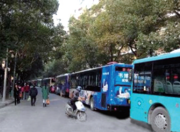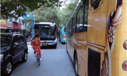 三是途经公交车众多。由于公交车车型较大,站点停靠、车辆交会也容易造成拥堵。