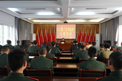 在宣讲中,潘锋用通俗易懂的语言和贴近生活的内容解读十八届三中全会精神,从“六位一体”到“全面深化改革的意义”,潘锋讲得详实,官兵们更是听得认真,到精彩处响起阵阵掌声。