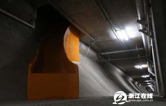 杭州建元隧道发展有限公司现场部朱楚荣介绍,隧道总共分3层,上层是排烟层,中间层为行车道,下层则是逃生通道。其中,行车道高度约6米左右,两头高、中间低,呈V字形,设有双向六车道,设计时速为80公里。