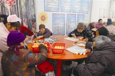 “这里生活的老人中,过半数为老年痴呆症患者,摆些老物件为的是唤起他们旧时的记忆,对病症有缓和作用。”机构负责人董琦说道。而在一旁的活动室,10多位走动不便的老人在护理员的陪伴下,做着解绳结、分纽扣、夹乒乓球等简单活动,“这有助于锻炼老年人的手、脑协调性。”