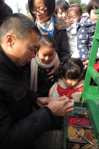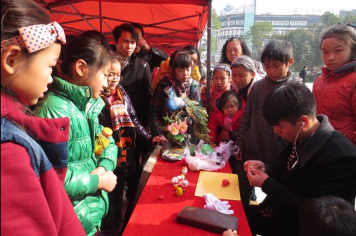 龙湾新闻网讯 2013年12月21日,龙湾区河泥荡公园里热闹非凡。一大群老人乐呵呵地坐在广场中间的椅子,听着温州著名女词师林彩琴婉转清丽的演唱;一群可爱的小朋友们围在民间艺人冯茂众糖塑摊前,叫嚷着要拿做好的一个个栩栩如生的糖塑作品;米塑摊前,米塑作品被小孩子们逐一分享,笑逐颜开;玻璃银光刻传承人项之华仔细地给作品上色;镶嵌漆画传承人倪以定娴熟地洒着粉沙;彩塑传承人叶芳林、古建筑木雕传承人舒策班和剪纸老师王俏莲则一丝不拘地捏、雕、刻着作品。另一边,市民们则一溜儿排成一队,围在一排的展板前指指点点,笑声连连。这是龙湾区文化广电新闻出版局举办的龙湾“非遗十年”展演活动。来自辖区内的非遗传承人集中展演了糖塑、米塑、泥塑、剪纸、玻璃银光刻、镶嵌漆画、古建筑木雕等非遗项目。同时,还现场演唱温州鼓词,举办非遗项目图片展览,分发《龙湾非遗十年》画册。丰富多彩、形式多样的非遗展演活动,让现场众多市民如痴如醉,流连忘返。