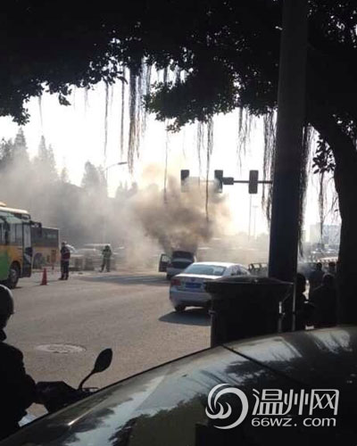 温州市区马鞍池西路三车刮擦 宝马5系起火(图)