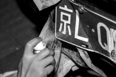 受试验条件限制,验证车牌隐形喷雾剂时,记者用带闪光灯的相机对车牌拍照,以此模拟高速路上的闪光电子眼抓拍系统。