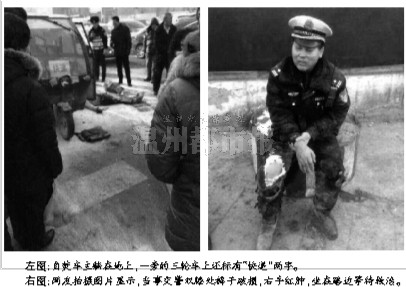 另一名目击者称,在事发地点一旁,一名身穿制服、胸口别有对讲机的警察全身都是泥,蹲坐在路边。警裤两个膝盖都被撕开口子,露出棉絮和血。