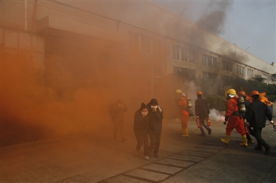根据情节设计,泰庆皮革有限公司4号皮革喷涂车间由于电线老化引发火灾,而且大火蔓及公司危化品仓库造成爆炸,大量化学品液体泄露,部分进入园区水体,产生的有毒气体造成下风向不同程度的污染,有2名工作人员受重伤,7人轻微中毒。区社会应急联动指挥中心接报后,立即启动一级应急预案,开展应急处置。经过近1小时的紧张处置,事态得以迅速控制,区政府及时召开新闻发布会,通报有关情况,消除社会恐慌。