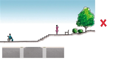 以道路为例,导则提出“宁静化设计”的概念,对交通流量较少的居住区道路,应采取缩窄交叉口、抬高人行横道线、设置特殊标识等措施,降低车辆行驶速度,减少噪音污染,保障居民安全,形成连续便捷的步行系统。