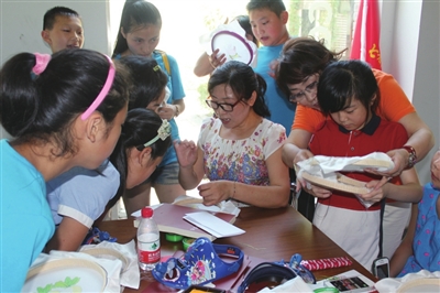 2013年7月,七都侨界留守儿童夏令营在温州文博城浙江创意园邹绳珠老师的带领下探访瓯绣之源。