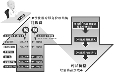 市卫生局医政处处长郑云蒸表示,此轮改革,以取消药品加成为核心,旨在破除“以药补医”,建立公立医院新型补偿机制。根据要求,市级公立医院实行药品“零差率”销售,即所有药品(中药饮片除外)按采购价卖给患者。