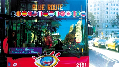 在西班牙巴塞罗那的大街小巷上,穿梭着70辆的旅游双层大巴士,每天都要承载各国游客观光整个城市。在这些旅游巴士上,张贴着许多国家的国旗标志。然而,其中的中国五星红旗居然少了一颗星,只有四颗星。