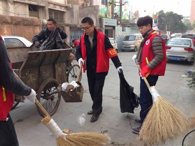 12月24日,记者走进状元街道横街社区内,社区书记徐伟正带着红袖章忙着打扫路面上的垃圾。社区里的党员、志愿者、社区工作人员也正在忙碌着,有的在清理路面上的垃圾,有的在整理绿化带里的果壳纸屑,有的正在清理墙面上的小广告。经过一番打扫,路面原先“脏乱差”的现象有了很大的改观。