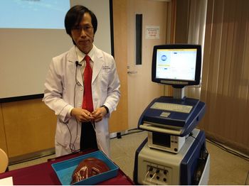 香港中文大学医学院影像及介入放射科教授余俊豪演示纳米刀治疗过程。来源:香港《大公报》