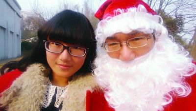 说到这次意外的惊喜,杜先生对记者说,这也是突发奇想。“女儿比较感性,女孩子嘛,喜欢各种小惊喜。最近女儿要考试了,学习很紧张,我也是想让她放松一下,乐一下。”杜先生对记者说,由于家住在上海的南京路附近,所以以前一家三口常去南京路逛街。“圣诞节的前几天,那里的圣诞气氛很浓,看到年轻人戴着圣诞帽在那里搞活动,气氛很热烈,回家后给女儿打电话时说起这事,女儿也很喜欢圣诞老人,于是我也想让女儿感受一下,就偷偷准备了这样一套行头。”