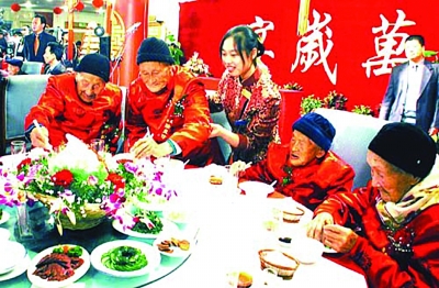 如皋市政府在申报长寿之乡阶段曾举办一次“太平盛世万岁宴”,出席宴会的105位百岁老人年龄加起来超过了10600岁,这是我国有史以来的第一次。