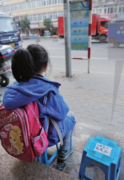 除了偶尔其女儿起得早拿凳子当玩具玩一会儿外,李木娥每天都坚持早上准时把凳子摆出去,到了晚上11点多公交车末班车了,才把凳子搬进来。