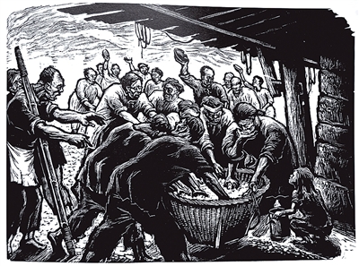 《抢饭吃》 (版画)郑野夫1947年作品