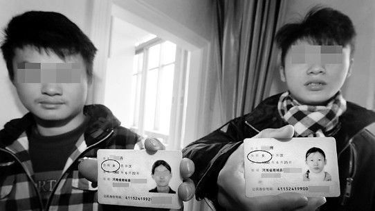 大姚(图右)、小姚(图左)身份证上的性别都为女性。