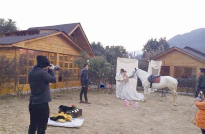 市区一些较大型的婚纱摄影机构,也接到不少询问马场摄影专题的电话,由于有动物在内,拍摄起来存在一定的难度,有马场专题的婚纱照套系也比普通套系价格稍贵。全城热恋负责人告诉记者,马场主题一直有推出,最近他们一直在关注网上流行的“马上体”,准备将“马上体”的好玩有趣创意融入到接下来的拍摄中。