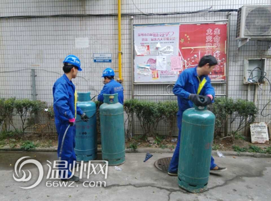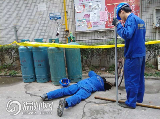 [1月8日13点10分]燃气公司工作人员在五环家园四幢附近的液化气管道进行检测,目前已拉起警戒线。
