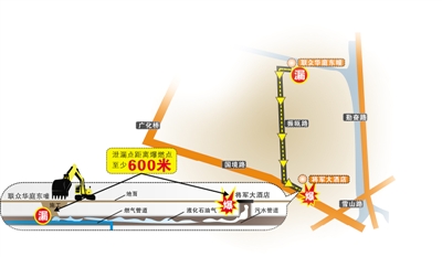专家解释,燃气渗透了土层扩散到两米外的一个雨水口,再顺着截污管道进入附近小区污水管线,顺着水流到达过境路污水主管线。将军大酒店前的窨井约6米深,处于这一带地下管网的下游。我市所用燃气为液化石油气,密度比空气重,所以得以在此聚集。专家说,燃气的穿行路线完全偏离燃气管道的埋设,出人意料,给调查造成了较大难度。