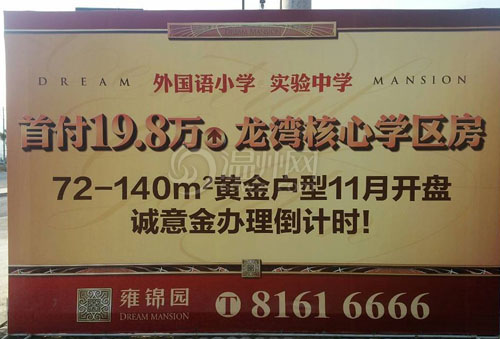 龙湾新区府旁的“雍锦园”房产项目,在广告中以“下楼就是名校”为噱头,更明确指出是“龙湾核心学区房”,但是当业主购买了该项目的房产之后却发现无法保证孩子进入就近的学校。
