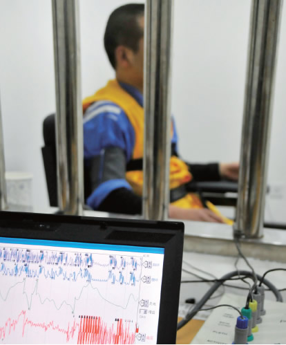 测谎工作就是用测谎仪连接测谎对象身体的几个部位,记录测谎对象回答问题时的呼吸、指脉、血压、心跳、皮电这五项数据,这些数据会第一时间传输到测谎专家的电脑中。测谎专家对这些数据进行现场分析,根据测谎对象反应较为明显的问题继续展开询问。测谎结束后,测谎专家还要进行反复的分析、比对。卢劲松说,测谎仪陪伴了他10多年,上班、出差都会带上它,办了这么多案子,虽然遇到不少狡猾的对手,但是它的准确率达到98%以上。