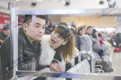 昨天上午,准备回湖北的魏先生夫妇,拎着大包小包,排着队上了L1136次列车。虽然魏先生只买到无座票,30多小时的旅途将很辛苦,但他还是笑得挺开心:“火车票只要180多块,比坐汽车省了300多块。”
