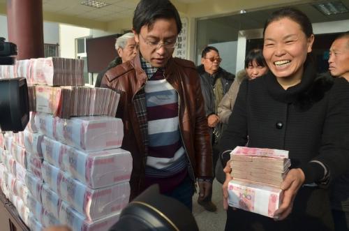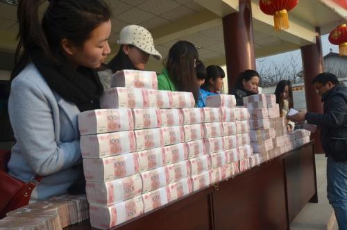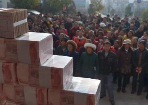 村子现场分红千万现金 村民称数钱数到手软
