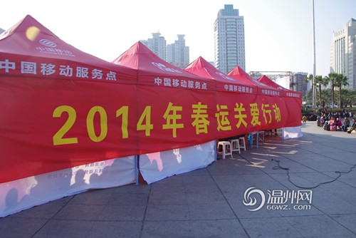 春运期间,为缓解车站售票大厅及候车室压力,从1月10日开始,温州火车站在车站广场搭建了临时候车室及售票厅。临时候车室面积约为3000平方米,设有顶棚、座椅、母婴候车区等,可以容纳3000多名旅客候车。据悉,临时候车室内服务及设施完善,火车站方面还将在候车室设置一个医疗点及志愿者服务点,24小时为旅客提供服务。