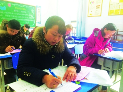 下午2点,随着监考老师一声令下,考试正式开始。前来应考的家长共16人,集中在一至四年级。不同于学生的是,家长们享有一项特权:可根据各人兴趣,任选一门学科应试。16位家长中有10人选择考数学,选择考语文的仅6人。