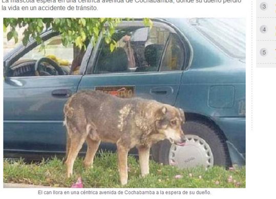 当地媒体报道,忠犬的感人故事在科恰班巴流传,因为这只米克斯从主人死后5年,依然不愿离开事故地点,每天在附近徘徊,只要一见到机车经过,就会不停吠叫,以为主人终于回来了,可惜的是主人永远都不会回来。