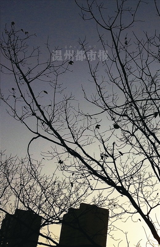 清晨,市区南塘街,树梢在冬日暖阳的映衬下,漂亮极了。