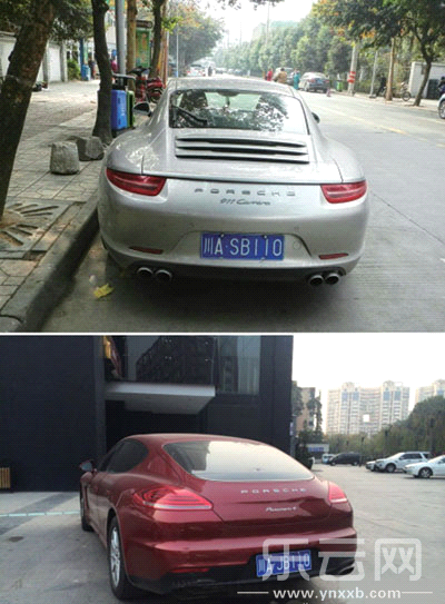 “这个车牌真滴屌爆了!”1月14日晚间10时,网民“四川身边事”在微博贴出两辆现身街头的“川A”车牌的保时捷跑车,车牌号分别是SB110和JB110。一辆银灰色的保时捷911 Carrera和一辆酒红色的保时捷Panamera。两辆车均价都在250万元左右。