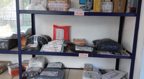 走访中,7个中档小区里,只有3个小区会登记快递信息,1个小区物业会核实业主身份。其中,个别小区会规范快递签收,在快递存放房间内,放置存放架,架子上表明各楼层数字,快递员将物品按地址存放在相应的隔层里。并且物业还会在存放室门口挂上小黑板,快递员写上快递信息,方便业主进出小区时查看。