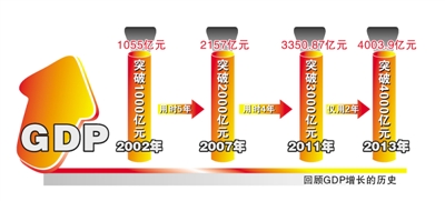 回顾GDP增长的历史图谱可见,2002年,温州市GDP总量突破1000亿元,达到1055亿元;2007年,GDP总量突破2000亿元,达到2157亿元;2011年,GDP总量突破3000亿元,达到3350.87亿元。GDP总量从“破1000亿”到“破2000亿”,用时5年;从“破2000亿”到“破3000亿”,用时4年;而从“破3000亿”到“破4000亿”,仅用时2年。