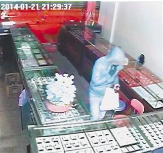 监控视频显示,这个小偷只用了10分钟就偷光了店里的金饰