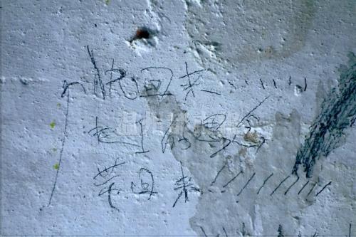 伸手关灯时,记者在靠床的墙壁上发现一行用铅笔写下的字:快回来,把我的思念带回来。其中的“我”被俏皮地改写成英文“I”。