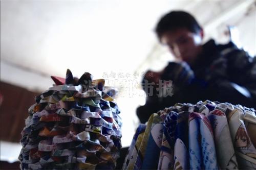 在文龙的房间里,记者看到了几个用广告纸折叠的、手工复杂的菠萝状笔筒。“这些都是你做的?难度很高吧,怎么做的啊?太厉害了……”
