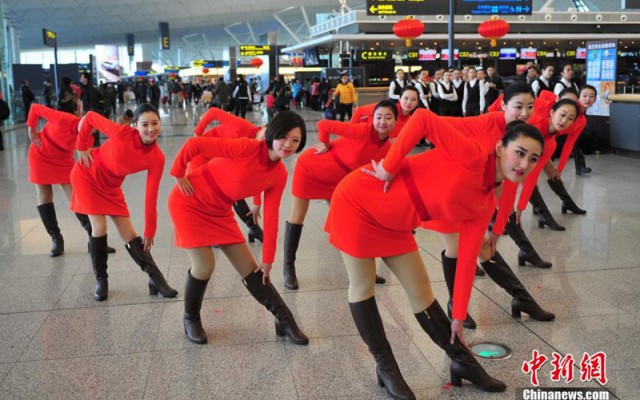 近日,沈阳空姐一曲热辣诱惑的快闪舞让网友大呼精彩,美艳空姐一袭红色套装,高挑身材配上曼妙火辣舞姿,顿时吸引大批乘客驻足观看。1月23日,沈阳桃仙机场上午10时,一辆载着空姐的电瓶车驶进客流中,一位手拿手绢的空姐在人群中扭起了二人转,接着一群空姐跳起了欢快的舞蹈,随之地勤人员和机场警察也参与到其中,引来很多旅客驻足围观。机场工作人员以“快闪”舞蹈表演为旅客带来了喜庆和愉悦。机场工作人员在跳“快闪”舞蹈。当日,是中国传统佳节“小年”,沈阳桃仙国际机场当日以“快闪”舞蹈表演为旅客在佳节中带来了喜庆和愉悦。