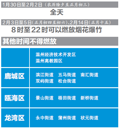 温州市区划定烟花爆竹燃放区 违规燃放将被处罚