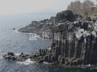 韩国济州岛柱状岩:柱状岩是济州岛著名景点,由大大小小的四方或六角的石柱组成,并在海岸边层层堆积。此地的柱状节理高达30~40米,宽达1000米左右,是济州岛的自然保护对象。