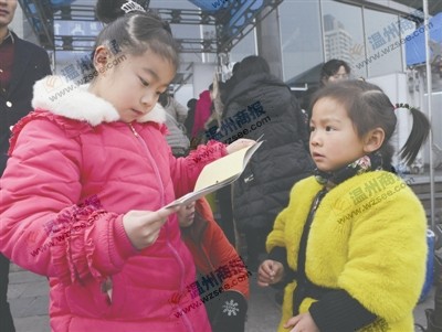 5岁的李佳琪(右)和8岁的尹晴玩着贴贴纸,大人说她们俩并没那么乐意回家,两人已习惯了温州的生活。