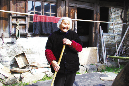 扫地的老人名叫唐根娣,虽然年逾九旬,牙齿差不多掉光了,但身板依然硬朗,耳不背眼不花。老人住的地方,是一处木结构的老房屋,收拾得非常干净。