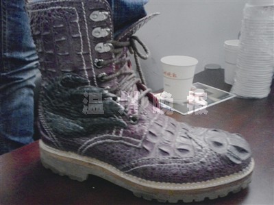 温商携鳄鱼养殖加工业回归 脚蹬鳄鱼鞋手提鳄鱼包