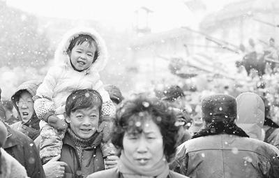 10日,游客冒着“太阳雪”在江苏南京夫子庙景区游玩。新华社发